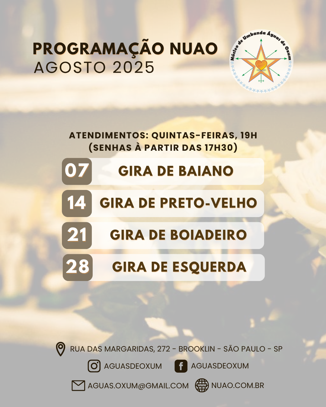 O Núcleo de Umbanda Águas de Oxumfoi fundado sob a regência de Mamãe Oxum e com a humildade e a sabedoria dos amados pretos-velhos. Membro da Associação Umbandista e Espiritualista do Estado de São Paulo (AUEESP), o núcleo é um local sagrado e caritativo, sustentado pelos pilares do amor, da fé, da caridade e da fraternidade, que juntos formam a sólida base de nossa religião: a Umbanda.