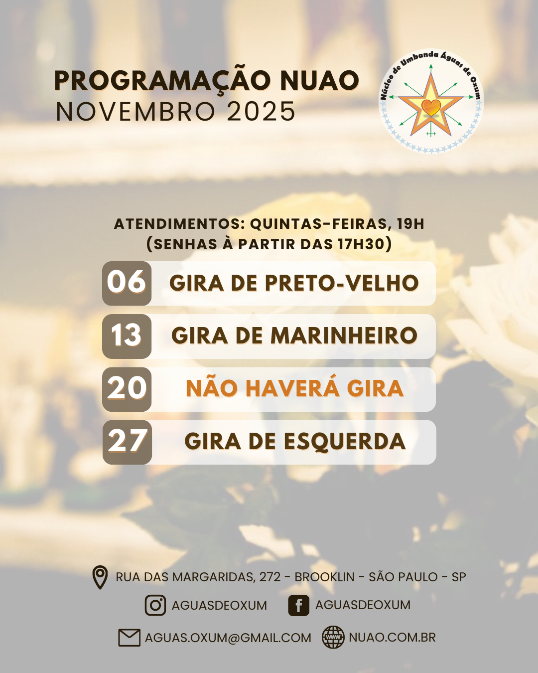 O Núcleo de Umbanda Águas de Oxumfoi fundado sob a regência de Mamãe Oxum e com a humildade e a sabedoria dos amados pretos-velhos. Membro da Associação Umbandista e Espiritualista do Estado de São Paulo (AUEESP), o núcleo é um local sagrado e caritativo, sustentado pelos pilares do amor, da fé, da caridade e da fraternidade, que juntos formam a sólida base de nossa religião: a Umbanda.